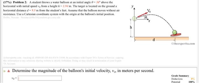 Solved 17 Problem 2 A Student Throws A Water Balloon At Chegg Com
