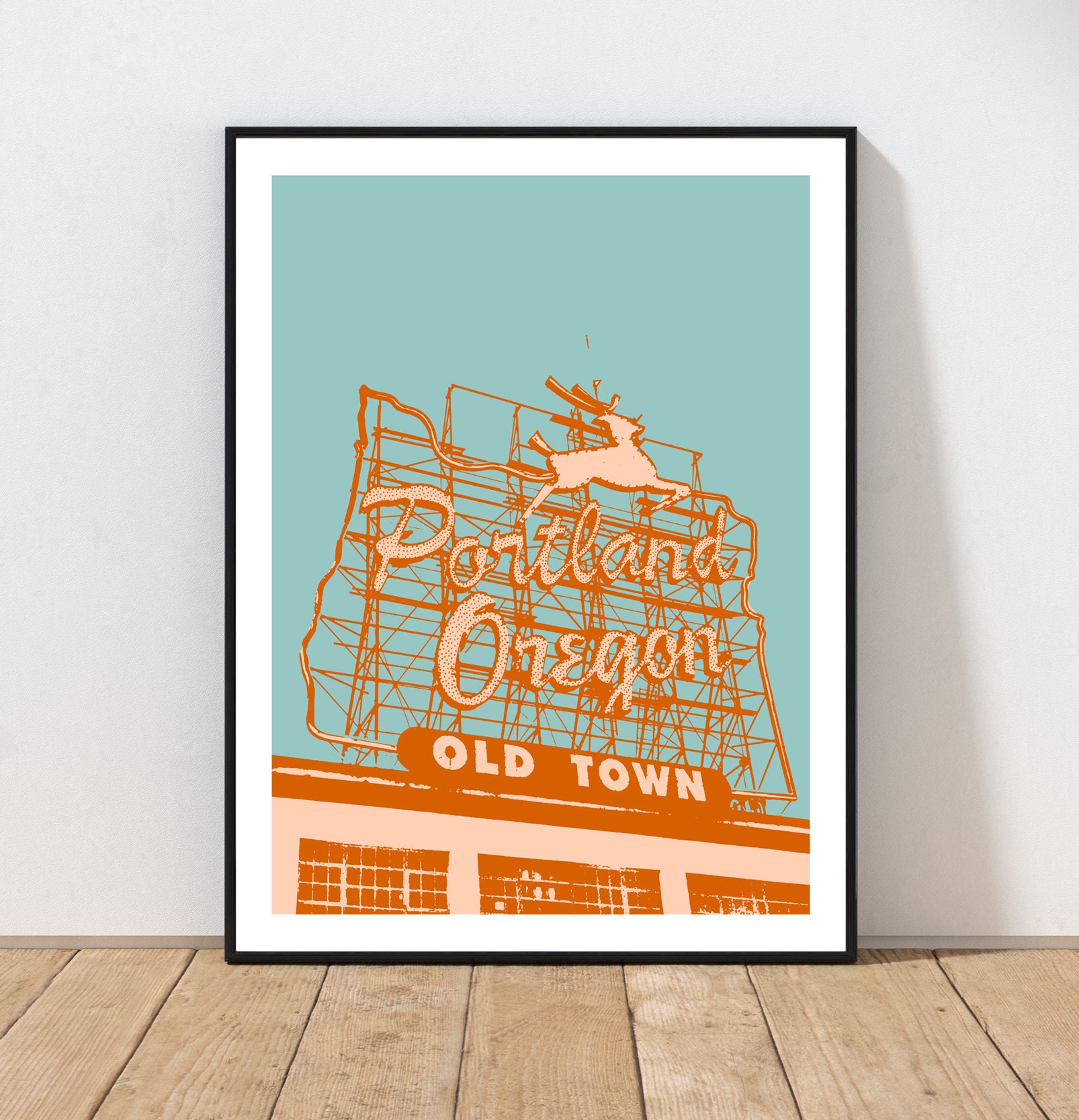 Portland Oregon Retro Skyline 9x12 Wall Art Print Home Decor Posters Prints Amazon Com