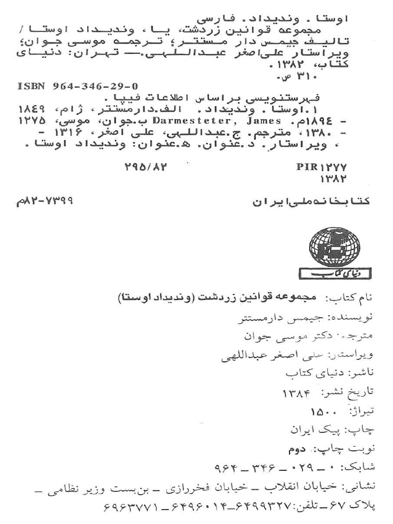 وندیداد ترجمه موسی جوان Pdf